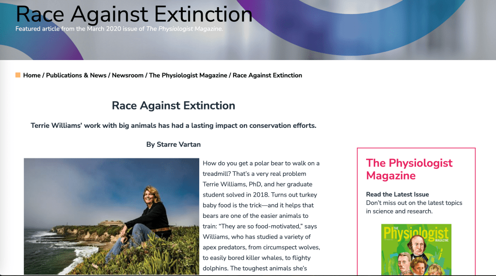 I had no idea how researchers like Terrie Williams determine the metabolic rates of animals before I spoke with her for The Physiologist magazine. You put them on treadmills. Turns out it’s tricky work, but someone has to do it: