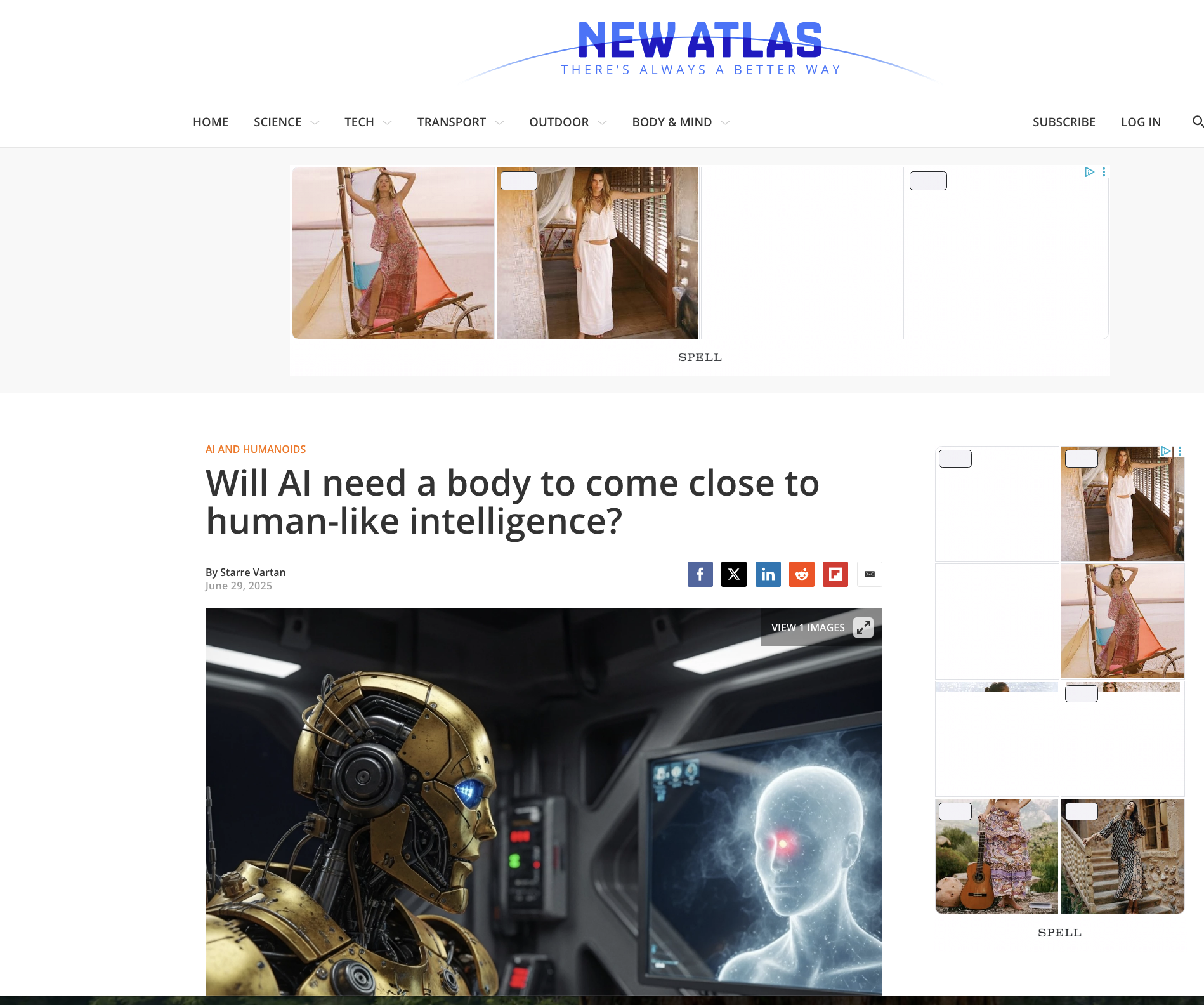 I really did a lot of deep thinking both pitching and writing this piece for New Atlas, where I was given a wide remit in how to cover this topic by editor Rich Haridy. I talked to Chinese soft robotics experts, AI researchers, and one of the pioneers of robotics, Cecilia Laschi (quoted below), and we had an incredible in-depth conversation about embodied intelligence. It’s these kinds of conversations that are why I love my work.