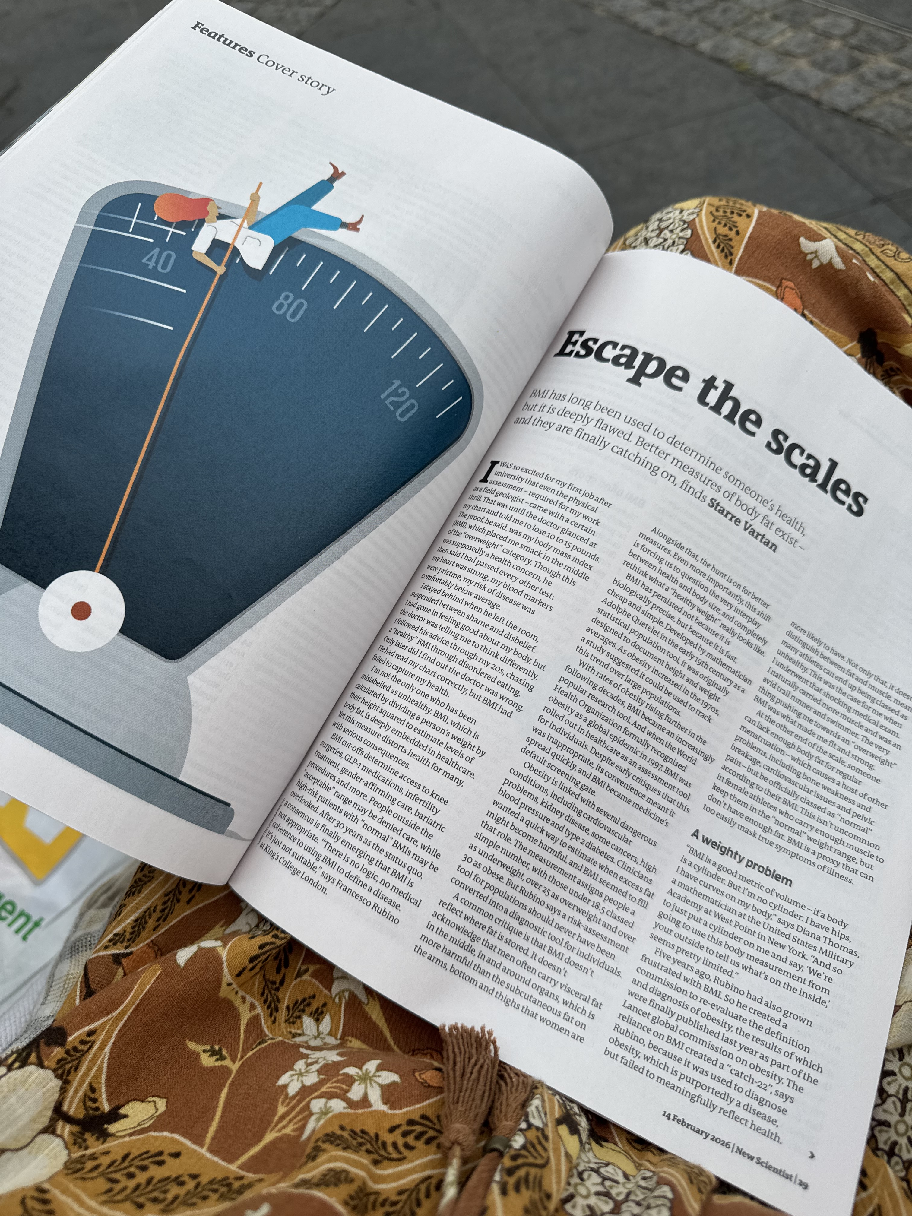 It’s always exciting to have a cover story! The 14 February issue of New Scientist featured my story debunking BMI and sharing a variety of alternatives to that measure that’s so flawed, The Lancet special commission on obesity called it out as being problematic.
