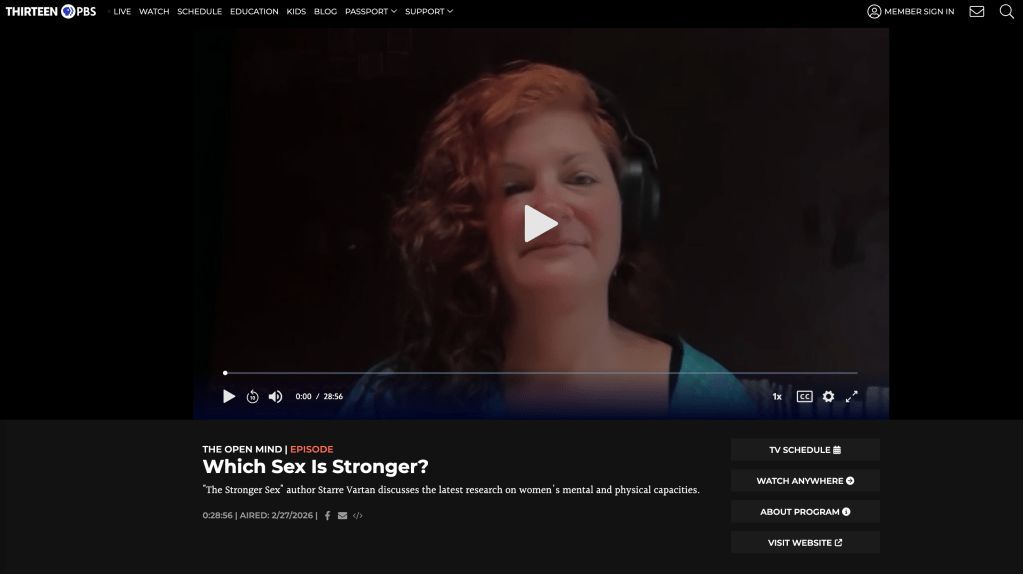 PBS The Open Mind: Which Sex is Stronger? (Airdate February 27, 2026)